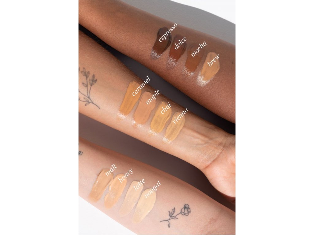 SLOŽENÍ: Aqua (water), coco-caprylate/caprate, glycerin, polyglyceryl-6 polyricinolate, oat (avena sativa) kernel extract, peach (prunus persica) fruit extract, tocopheryl acetate (vitamin e), biosaccharide gum-1, sodium anisate, sodium levulinate, magnesium sulfate, sodium salicylate, ethylhexylglycerin, citric acid, glyceryl caprylate, polyhydroxystearic acid, potassium sorbate. May contain +/- iron oxides, CI77891.