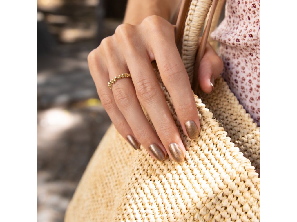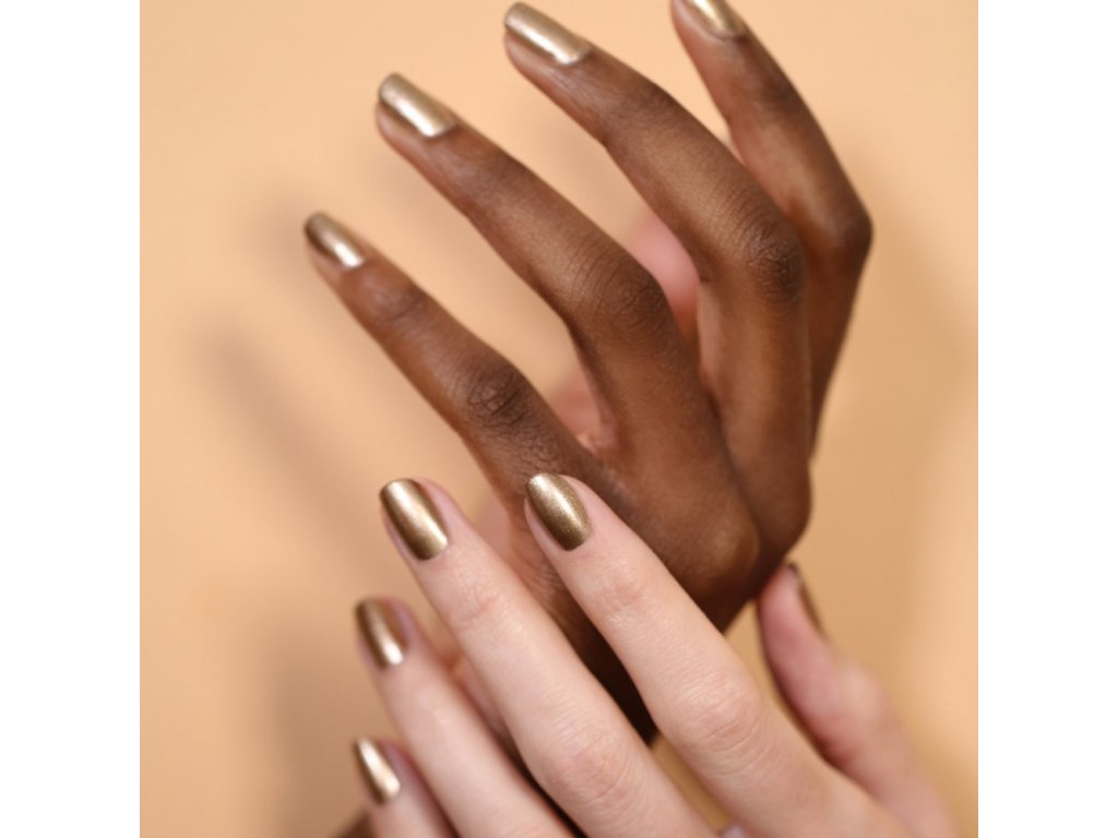SLOŽENÍ: Butyl acetate, ethyl acetate, nitrocellulose, isosorbide dicaprylate/caprate, adipic acid/neopentyl glycol/trimellitic anhydride copolymer, alcohol, mica, CI 77000 (aluminium powder), stearalkonium bentonite, CI 77491 (iron oxides), isopropyl alcohol, CI 77499 (iron oxides), etocrylene, diacetone alcohol, cocos nucifera (coconut) oil, CI 77891 (titanium dioxide), trimethylpentanediyl dibenzoate, helianthus annuus (sunflower) seed oil, phosphoric acid, alumina, bambusa vulgaris sap extract, tocopherol, acetyl tributyl citrate, silica.