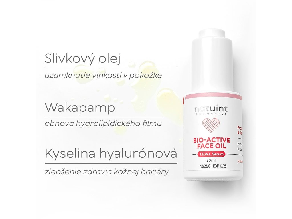 SLOŽENÍ: Prunus Domestica Seed Oil, Squalane (Olive)*, Isoamyl Laurate, Isoamyl Cocoate, Ricinus communis seed oil, sorbitan olivate, sodium hyaluronate, caproic acid, Triolein, Ethyl Olivate (and) Olea Europaea (Olive) Leaf Extract, Vegetable Oil (and) Simmondsia Chinensis (Jojoba) Seed Oil (and) Curcuma Longa (Turmeric) Root Extract, Caprylic/capric triglyceride (and) Salicornia herbacea extract, Tocopherol, Caprylic/capric triglyceride (and) Undaria pinnatifida extract.